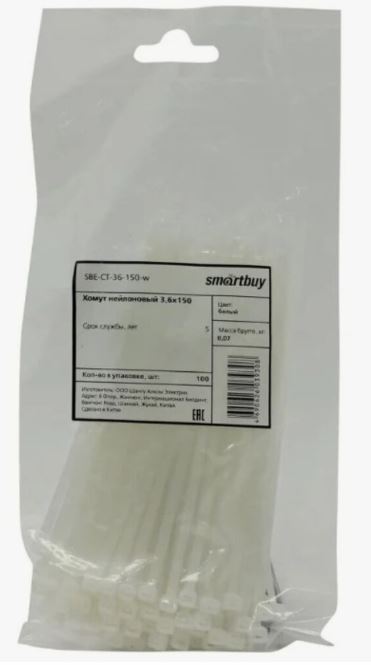 Купить Хомут нейлоновый Smartbuy, 3,6х250, белый SmartBuy по лучшей цене с доставкой. Зарядочка - интернет магазин №1 в Калининграде
